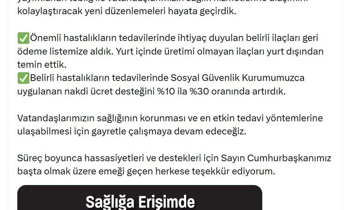 Çalışma ve Sosyal Güvenlik Bakanı Vedat Işıkhan, önemli hastalıkların tedavisinde ihtiyaç duyulan bazı ilaçların geri ödeme listesine...